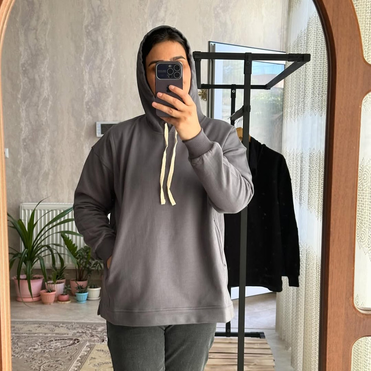 هودی بیسیک و با کیفیت با داخل کرکی که پرز نمیدهد و تغییر رنگ ندارد. مدل باکسی و قوارهای که تنخور زیبایی دارد.
