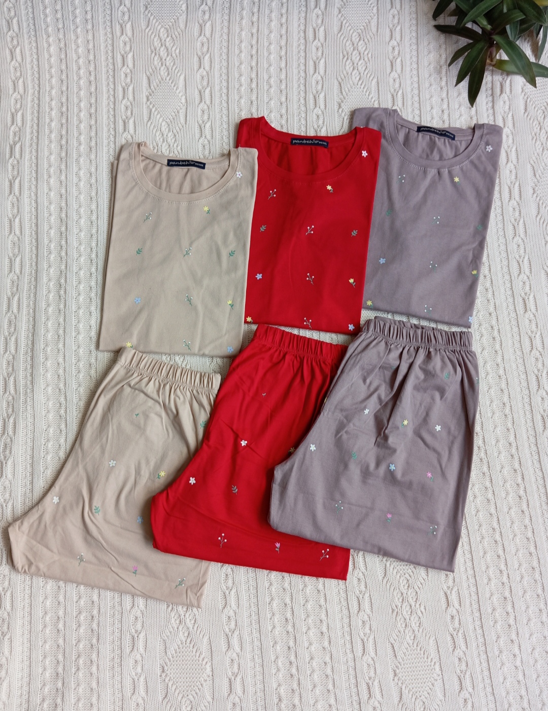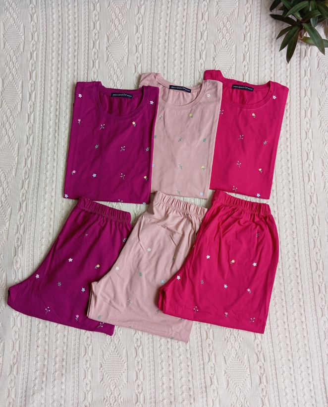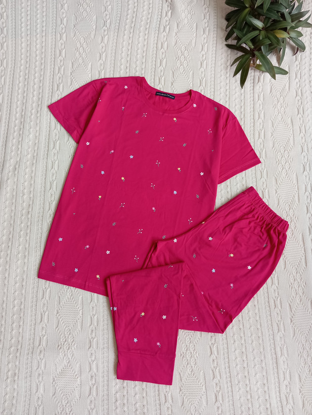 ست زنانه تیشرت و شلوار پنبه چاپ برجسته