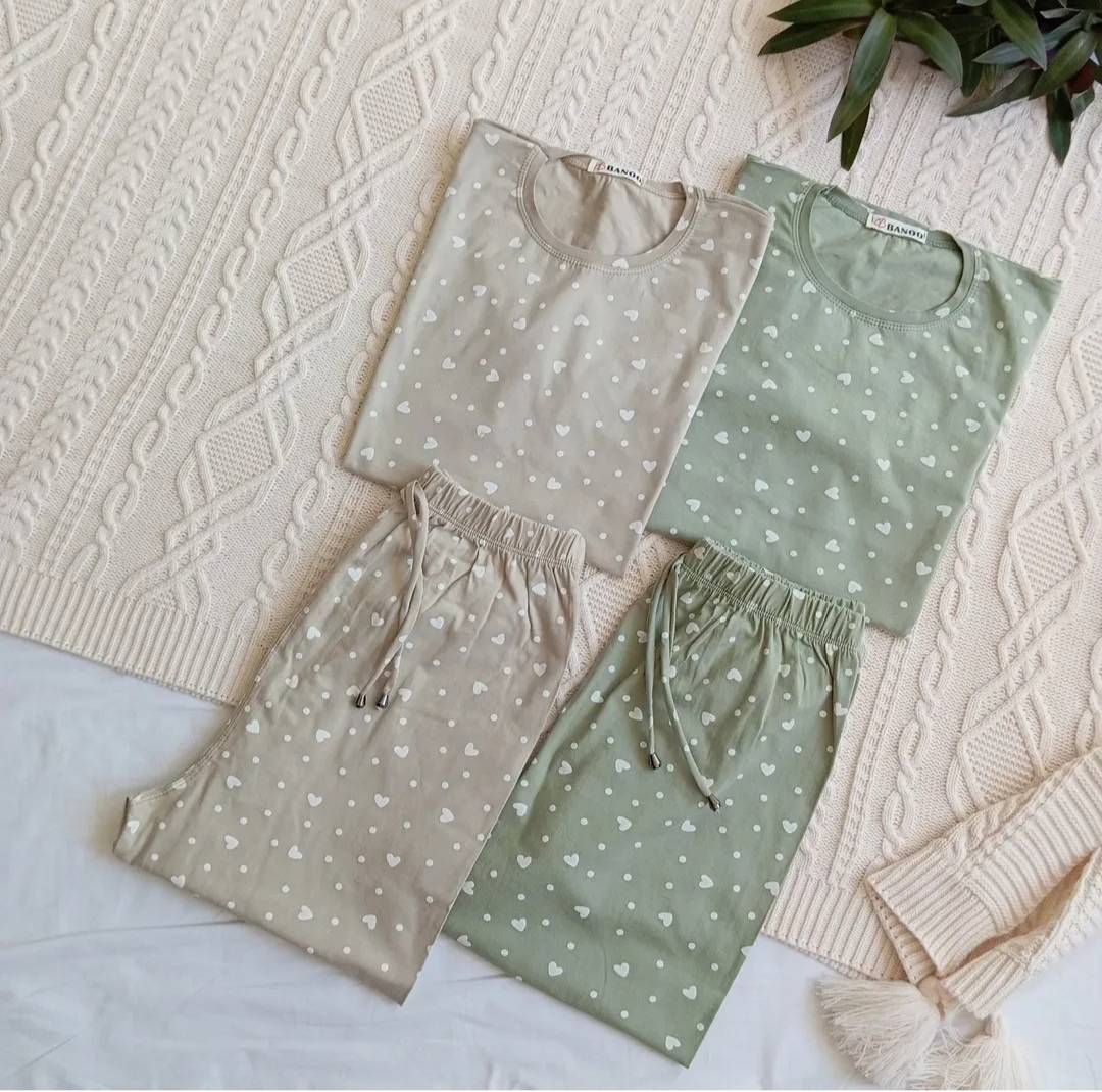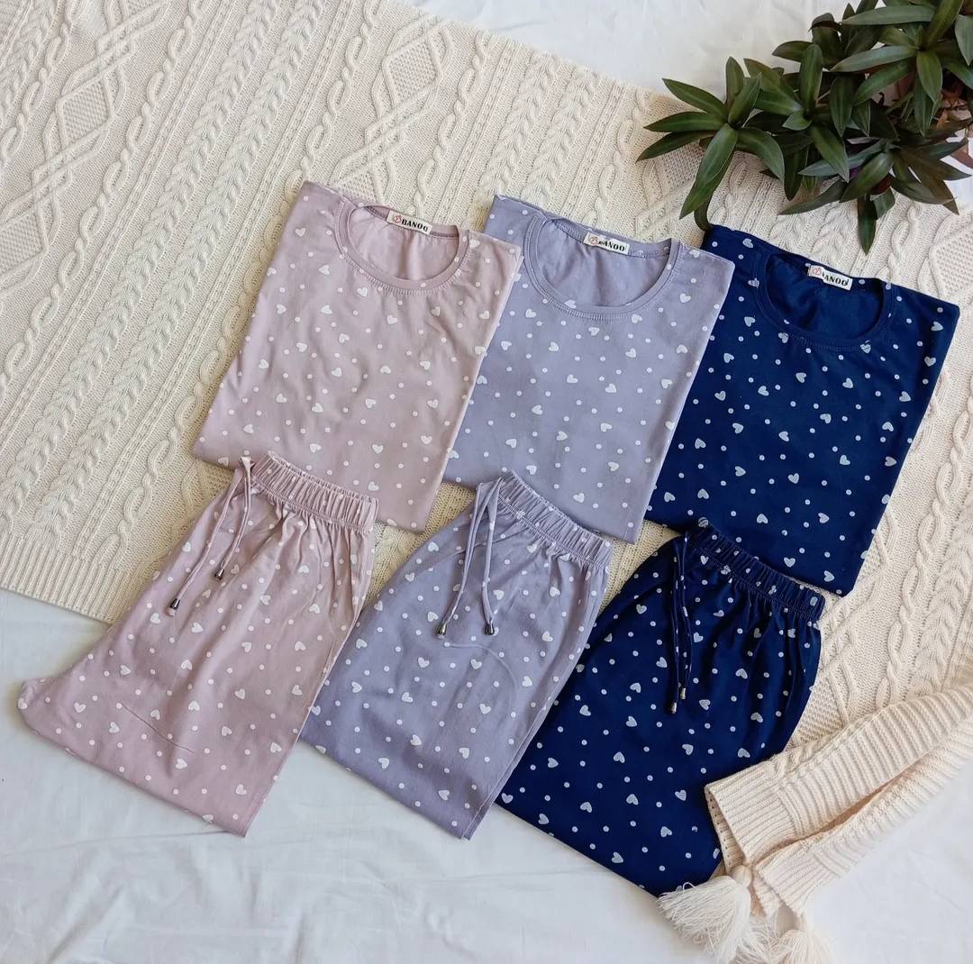 ست تیشرت شلوار زنانه قواره دار قلبی نخ پنبه