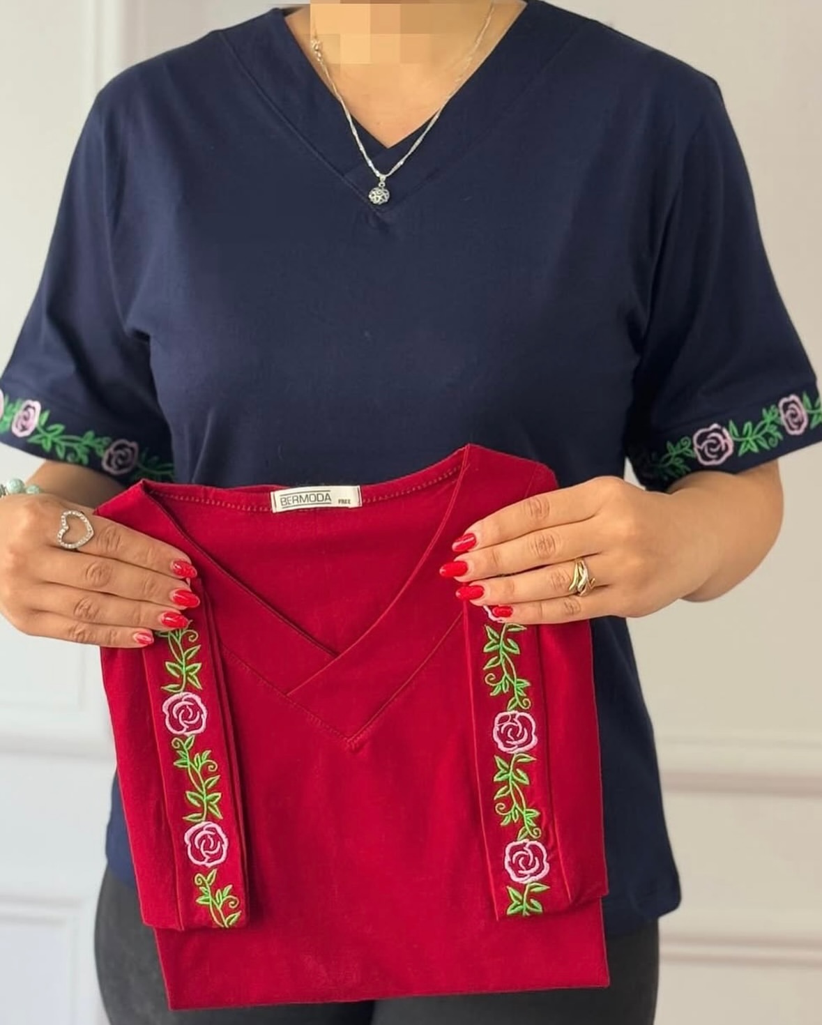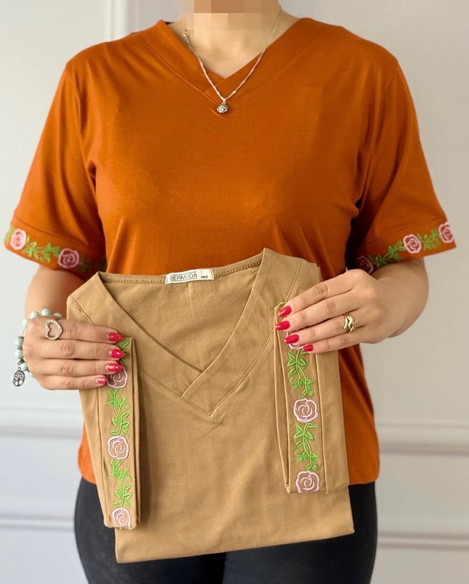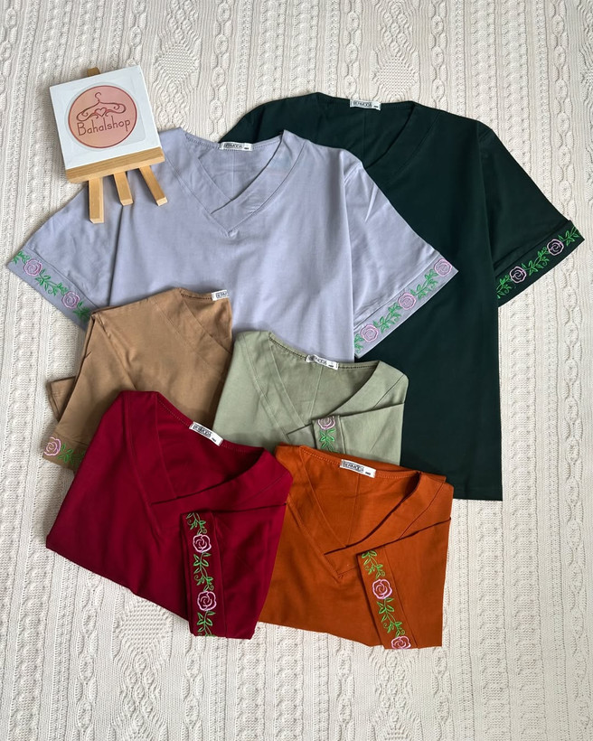 تیشرت زنانه یقه هفت گلدوزی ترانه
