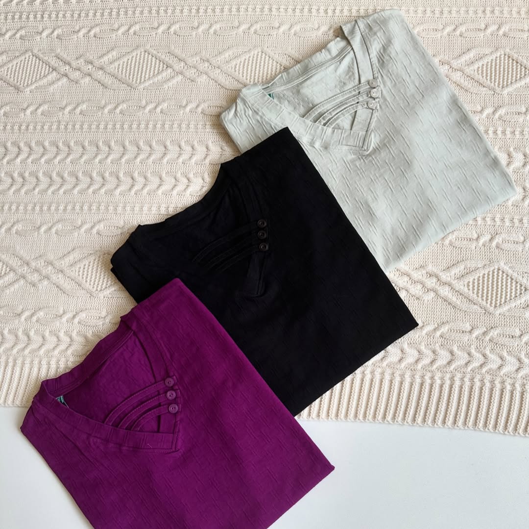 ورق بزنید و جزییات و تنخورش اسلاید آخر مشاهده کنید @bahal.shop @bahal.shop اینجا باحال شاپ سرزمین لباس های پنبه ای و با کیفیت مشخصات محصول تیشرت یقه بندی سه دکمه نازگل جنس نخ پنبه لاکرا فری سایز مناسب ۴۸ دور سینه در حالت عادی:۱۰۶__۱۳۶ کشسانی دور بازوعادی:۴۴___۵۴ کشسانی قد تیشرت:۶۸ با ۸ رنگبندی جذاب توضیحات محصول: تیشرت های نخ پنبه یقه دکمه بدون ذره ای پلاستیک و الیاف مصنوعی. فوق العاده نرم و لطیف و با کیفیت پترن روی آستین بوق العاده ظریف و تمیز ثبت از طریق سایت و دای رکت سبد هم داریم ارسال سریع و هر روزه از ابهر به قبل از ثبت هایلایت رضایت و مقایسه قی مت ببینید ممنون از حمایت همیشگی تون سایت: bahalshop.ir bahalshop.ir