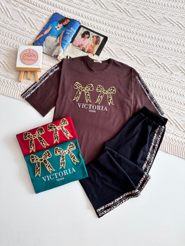 ناموجودست تیشرت و شلوار پاپیون نواری