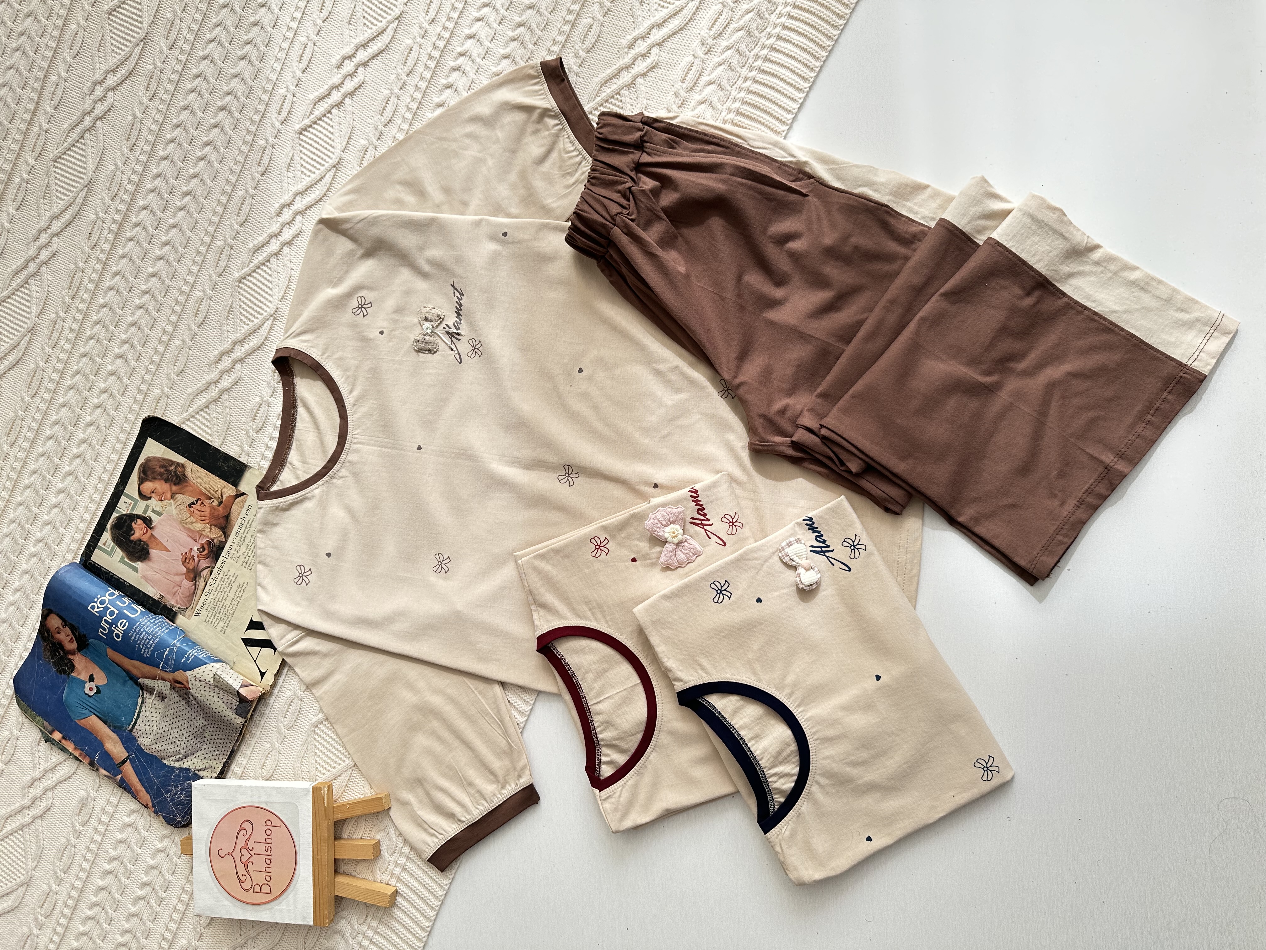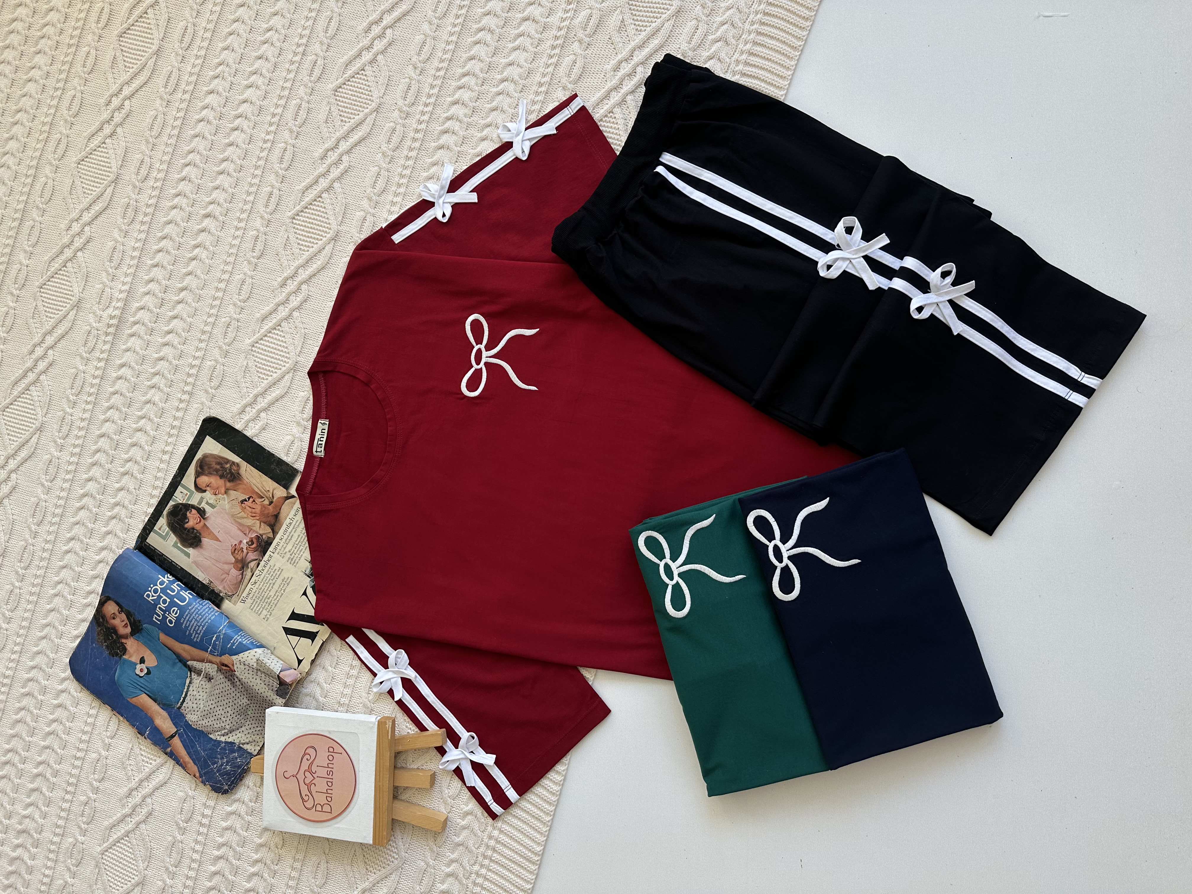 ناموجودست تیشرت و شلوار پاپیون نواری